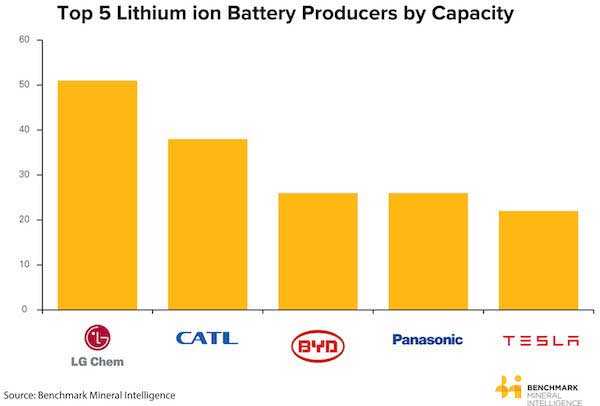 (容量排名前五位的鋰離子電池制造商的條形圖)