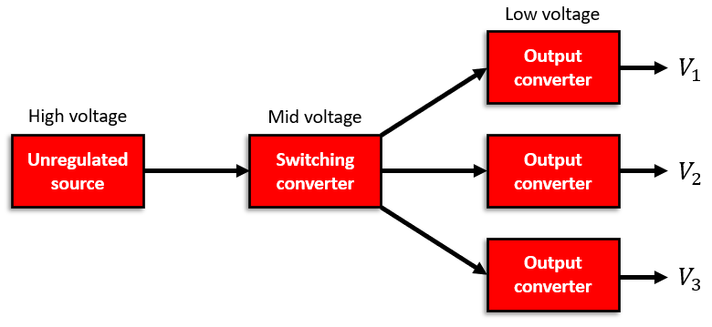 上述策略中的輸出轉(zhuǎn)換器可以是開關(guān)穩(wěn)壓器或線性穩(wěn)壓器,具體取決于確切的功率要求,第一轉(zhuǎn)換器級中的任何控制機制以及未穩(wěn)壓電源的行為。