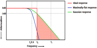 ADC中的理想,最大平坦度和高斯ADC輸入頻率響應(yīng)曲線